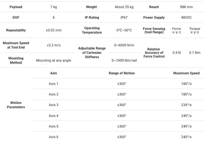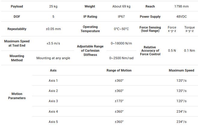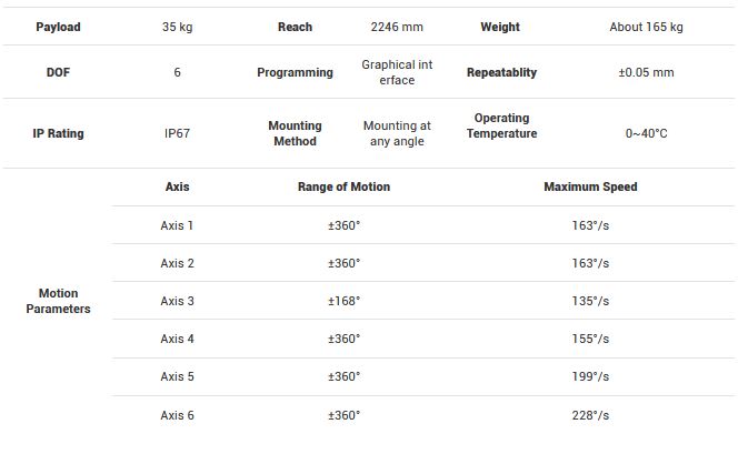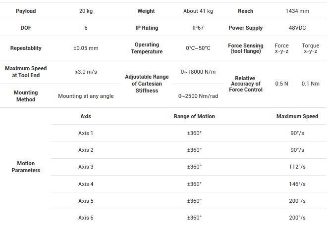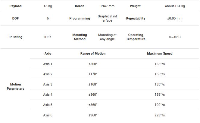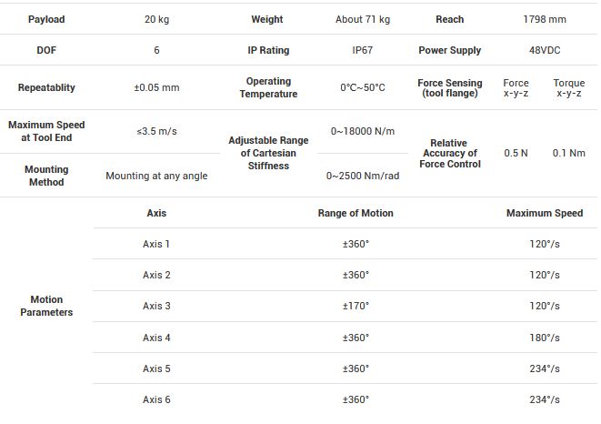 O corpo do robô com classificação de proteção IP67 pode se adaptar a cenários de aplicação mais rigorosos. O gabinete de controle independente fornece recursos de E/S mais ricos e extensibilidade mais flexível. Seu controlador de segurança independente integrado, certificado pela TÜV, a segurança funcional atende ao padrão ISO13849-1:2015, até o nível PL d,Cat. 3.